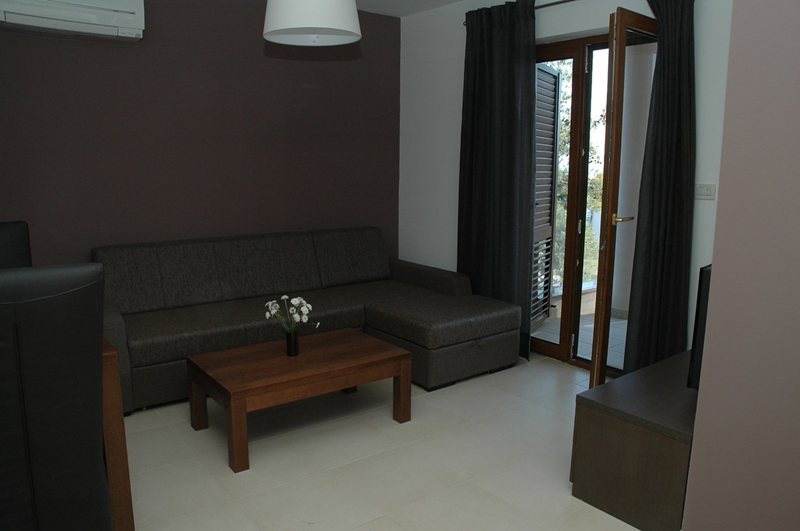 Dvije spavaće sobe (bračni krevet, 3 kreveta za 1 osobu) + sofa na razvlačenje u dnevnom boravku